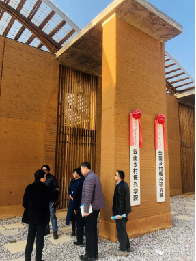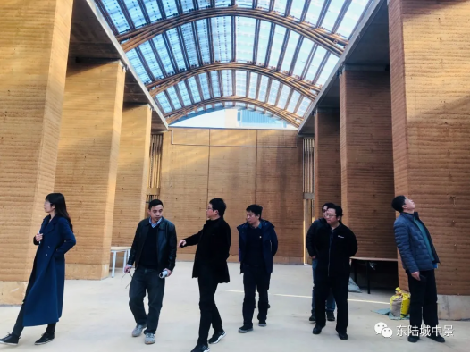 翟辉经理讲解云南乡村振兴公司内夯土墙设计理念