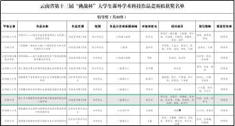 所获奖项:云南省第十三届“挑战杯”老员工课外学术科技作品竞赛特等奖