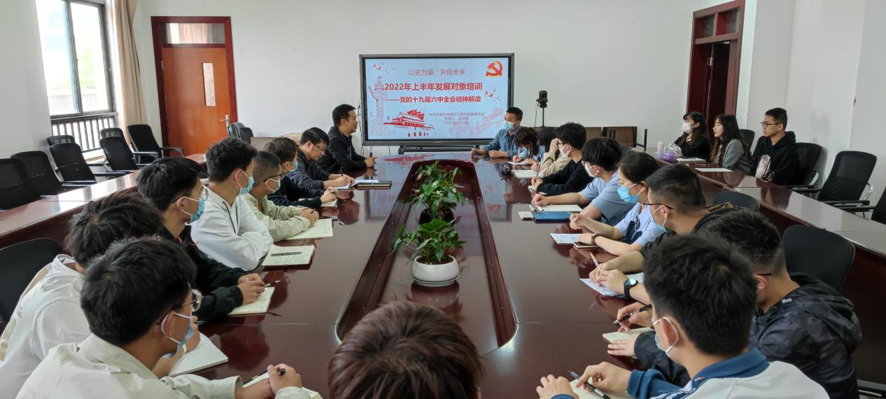 公司党委书记赵雪春同志对发展对象进行了理论培训,认真学习中国共产党十九届六中全会精神,赵雪春同志从以下七个方面进行了讲授:一、深刻认识总结党的百年奋斗重大成就和历史经验的重大意义;二、深刻认识党的百年奋斗的初心使命和重大成就;三、深刻认识中国特色社会主义新时代的历史性成就和历史性变革;四、深刻认识党的百年奋斗的历史意义和历史经验;五、深刻认识以史为鉴、开创未来的重要要求;六、从党的百年奋斗历程中汲取智慧和力量;七、全面贯彻落实党的十九届六中全会精神,坚定沿着习近平总书记指引的方向阔步前进。通过理论培训,增强了发展对象对党的十九届六中全会精神的学习和领会。