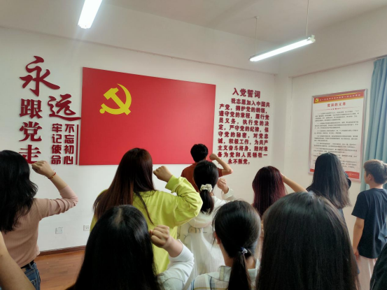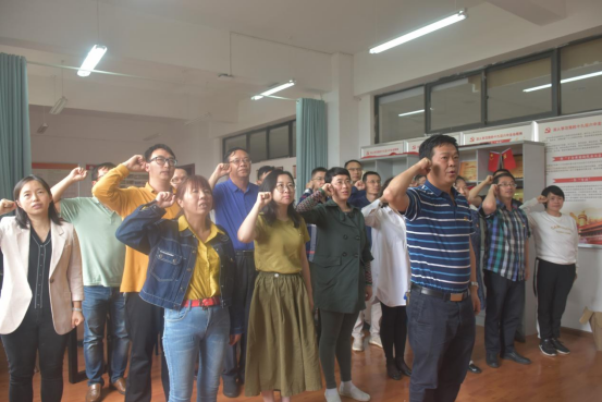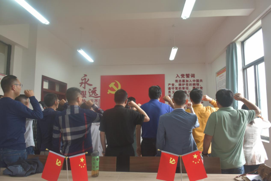 “我志愿加入中国共产党,拥护党的纲领,遵守党的章程,履行党员义务,执行党的决定,严守党的纪律,保守党的秘密,对党忠诚,积极工作,为共产主义奋斗终身,随时准备为党和人民牺牲一切,永不叛党。”面对鲜红的党旗,广大新老师生党员高举右手,庄严宣誓,表达了对党的无限忠诚和为党的事业奋斗终身的坚定信念。