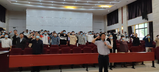 培训活动开班仪式在庄严的国歌中开始,紧接着公司党委书记赵雪春同志领誓,全体党员同志高举右手,重温了入党誓词。