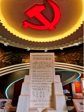 随后,全体党员来到了著名的民族团结誓词碑前。这座碑铭见证了1951年普洱各族人民在党的领导下,立碑盟誓、同心同德跟党走的伟大历史时刻。近日,中共中央总书记、国家主席、中央军委主席习近平还给普洱民族团结誓词碑盟誓代表后代回信,对他们予以亲切勉励并提出殷切希望。总书记在回信中指出,70多年来,各族群众一心向党、团结奋斗,推动边疆地区经济社会发展取得了历史性成就,书写了民族团结进步的生动篇章。总书记强调,中华民族是一个大家庭,56个民族就是相亲相爱的一家人,各族人民都要把中华民族共同体意识牢记心间、融入血液,共守祖国疆土、共建美好家园,让民族团结进步之花越开越绚烂。