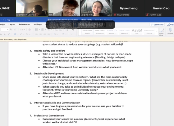 伙伴计划面向土木工程中英合作办学项目有计划出国的大三员工,在员工出国留学前一年,通过结对子的形式建立起云老员工与英国思克莱德大学员工的联系,组织开展一系列线上交流活动。本学期截至目前已成功开展的伙伴计划系列活动包括:员工自我介绍与破冰活动、关于苏格兰和中国假期的交流讨论、关于自主学习的交流讨论。