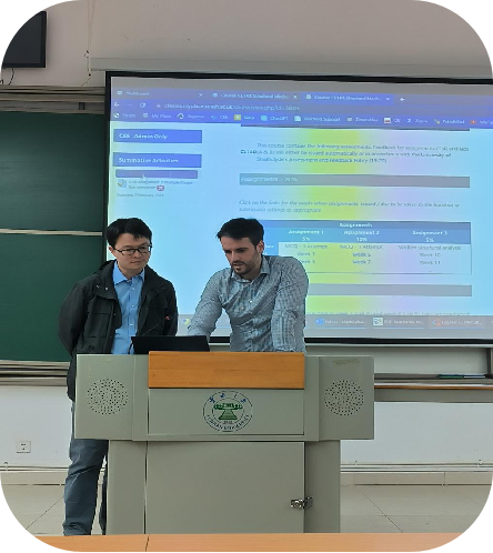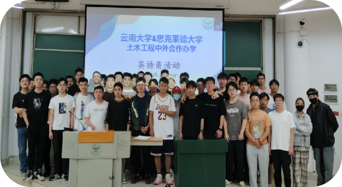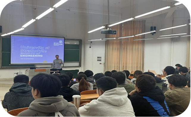 David Alcaraz-Garcia和叶俊老师共同给员工进行了“ Postgraduate, PhD, and Research of Strathclyde”(思克莱德大学硕士学位、博士学位、研究领域主题短课)。叶俊老师首先向同学们详细介绍了目前个人正在进行的研究课题内容及取得的阶段性成果。外教David Alcaraz-Garcia则侧重介绍了思克莱德大学硕士学位、博士学位及相关研究领域。通过本次专题课程介绍,土木工程中英合作办学的员工对思克莱德大学学术发展有了更加全面的认识和了解。