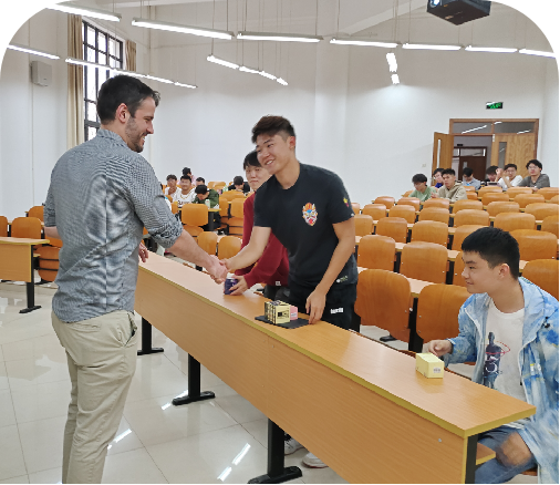 David Alcaraz-Garcia带领全体项目员工开展了一场生动趣味的英语角活动,活动内容包括英文诗歌朗诵、英文猜词游戏、主题聊天及游戏环节。同学们兴趣盎然,乐在其中。参与的同学均获得盲盒一份,外教还为优秀员工颁发了特别盲盒。