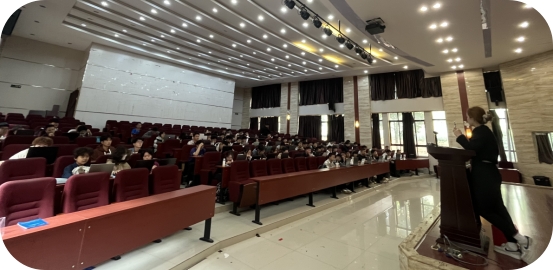 活动现场,全体 24 级同学齐聚一堂,那场面简直热闹非凡。来自英国思克莱德大学的LILY老师首先敞开心扉,分享了自己当初选择思克莱德大学的原因。性价比高,意味着在那里可以用相对合理的费用获得高质量的教育资源;专业度强,更是让同学们对这所大学的学术水平充满了期待。老师绘声绘色地讲述着在格拉斯哥的暖心个人留学经历,从古老的校园建筑到丰富多彩的校园活动,从友善的当地居民到充满挑战的学术氛围,每一个故事都仿佛带着同学们穿越时空,一同领略了异国他乡的独特魅力。
