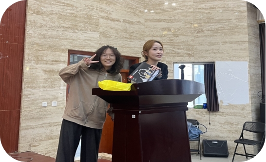 颁奖环节惊喜一波接一波。5 名同学凭借出色表现斩获最佳表现奖,那荣耀的时刻,简直羡煞旁人。紧张刺激的猜拳决胜后,一位幸运 “锦鲤” 抱走了乐高积木,那兴奋劲儿,感觉能绕地球一圈。还有知识达人奖得主收获了一套雅思书,为留学之路添砖加瓦。其他同学也没空手而归,盲盒抽奖嗨翻天,泡泡玛特最新 3 款手办盲盒,瑞士巧克力及解压玩具-慢回弹等,每一个盲盒都像是一个小惊喜,让同学们感受到了活动的满满诚意。