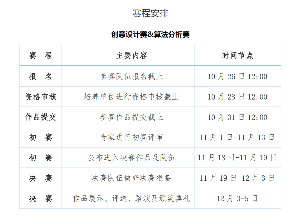 创意设计赛与算法分析赛为初赛与全国决赛两个阶段。